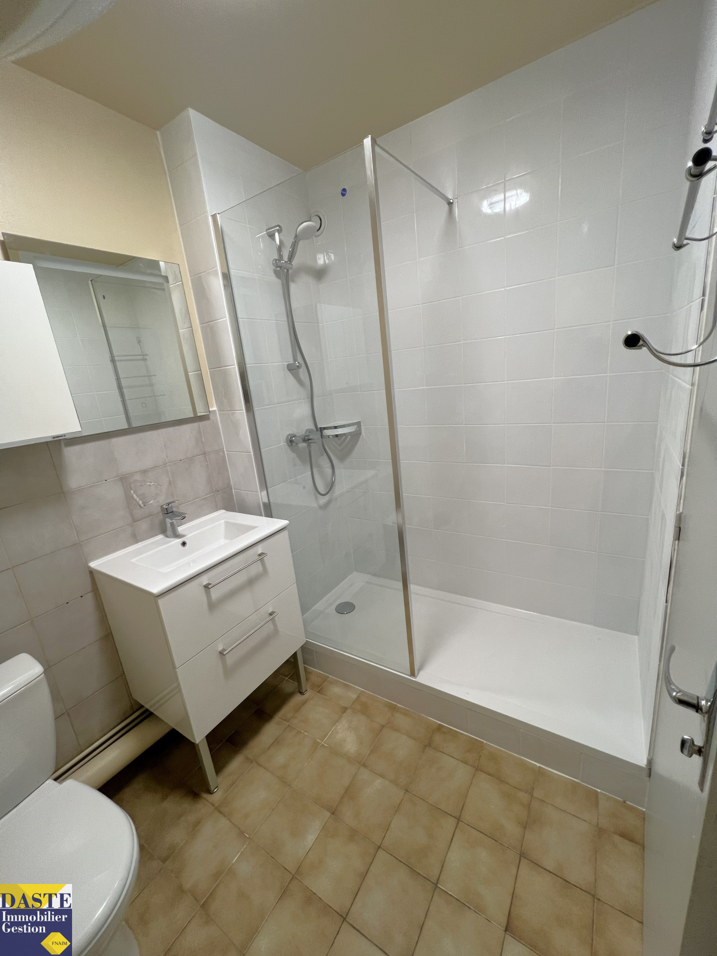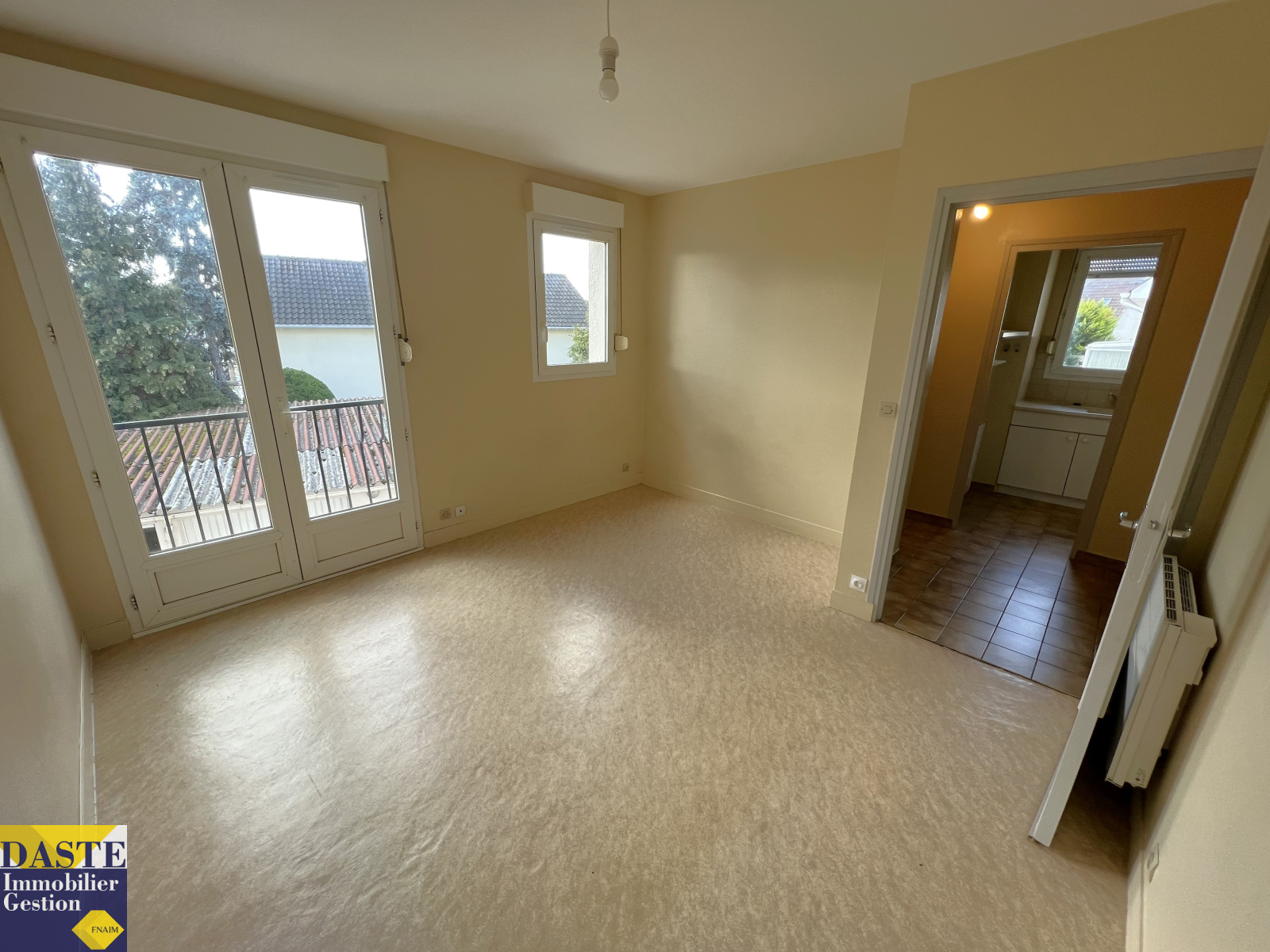 Appartement F1 de 24.07m² au 1er étage d'une petite résidence très calme : Entrée, cuisine aménagée, séjour, salle d'eau neuve avec wc. Cave. Libre le 24 janvier 2026