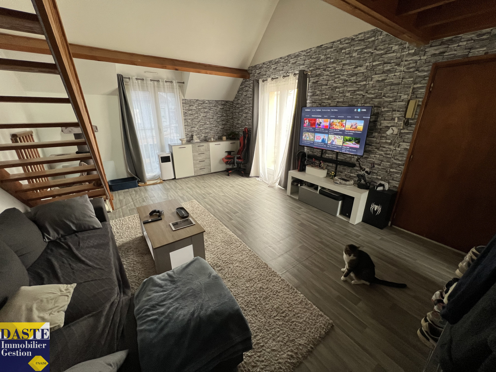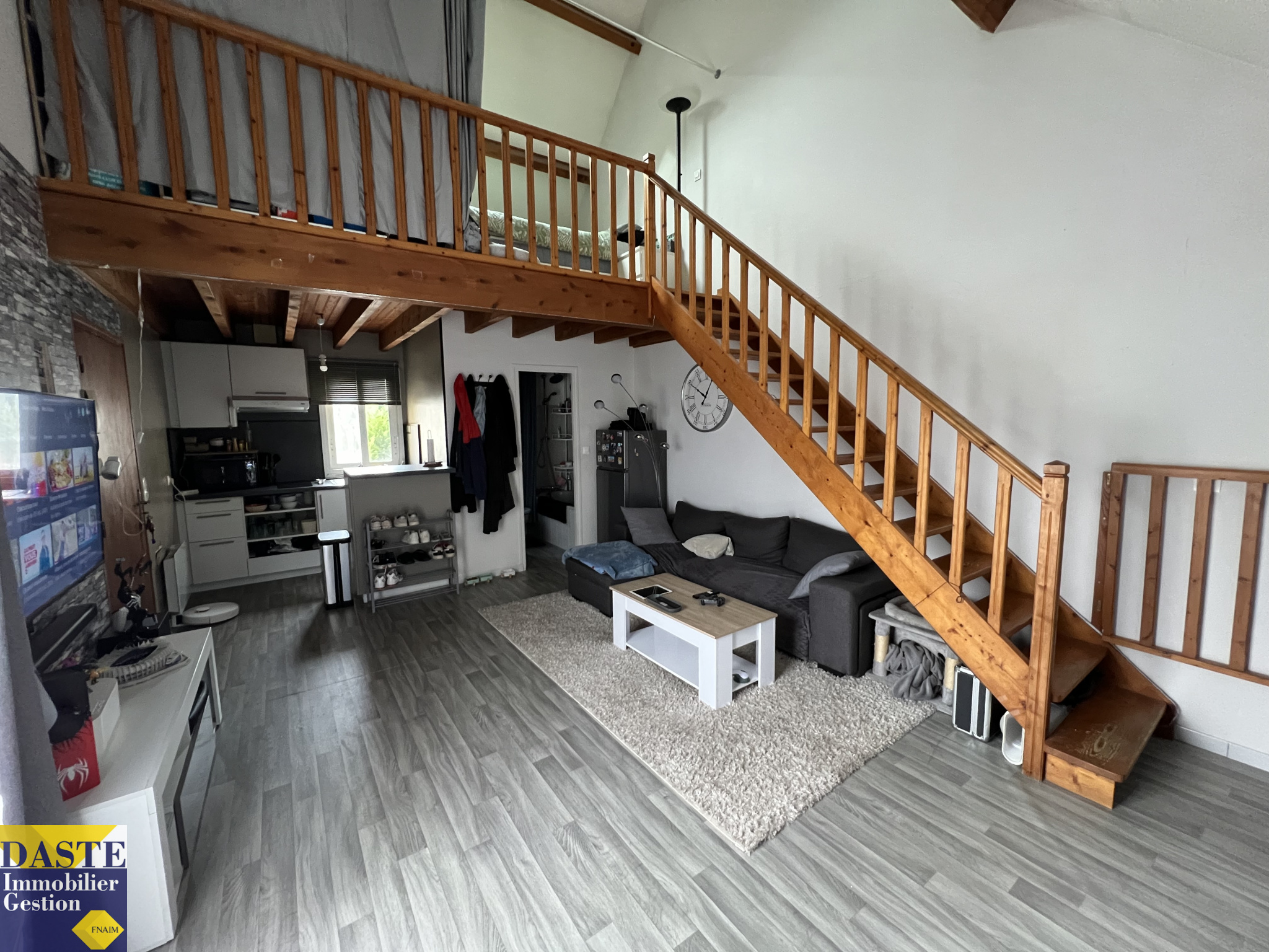 F2 en duplex de 43m² Entrée, Séjour avec grande terrasse, cuisine US, salle de bains, chambre en mezzanine. Libre le 21 février 2026