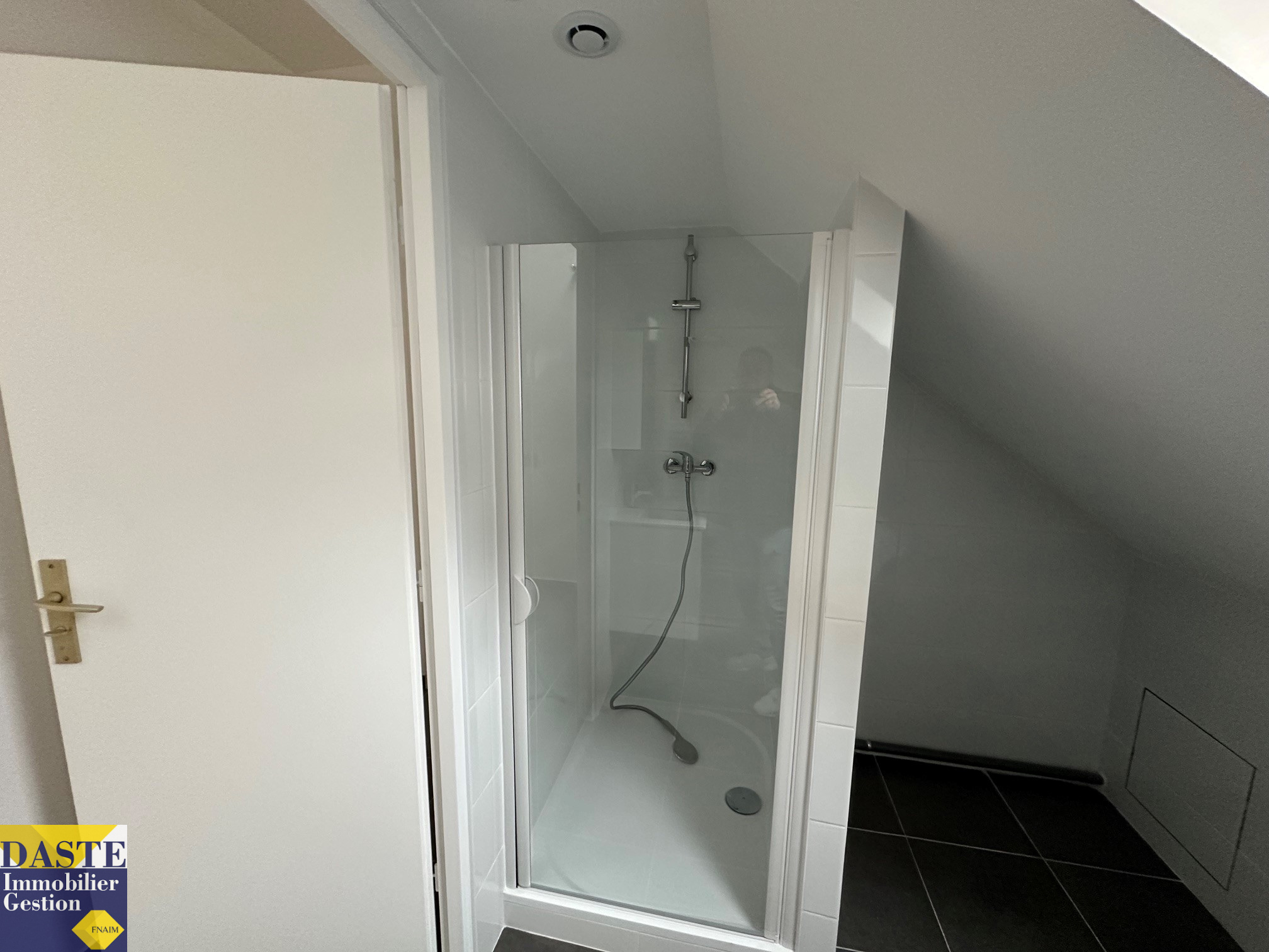 Maison de ville rénovée de 59.5m² comprenant entrée, séjour, cuisine équipée séparée, wc. A l'étage, pallier desservant 2 chambres et une salle d'eau. Libre