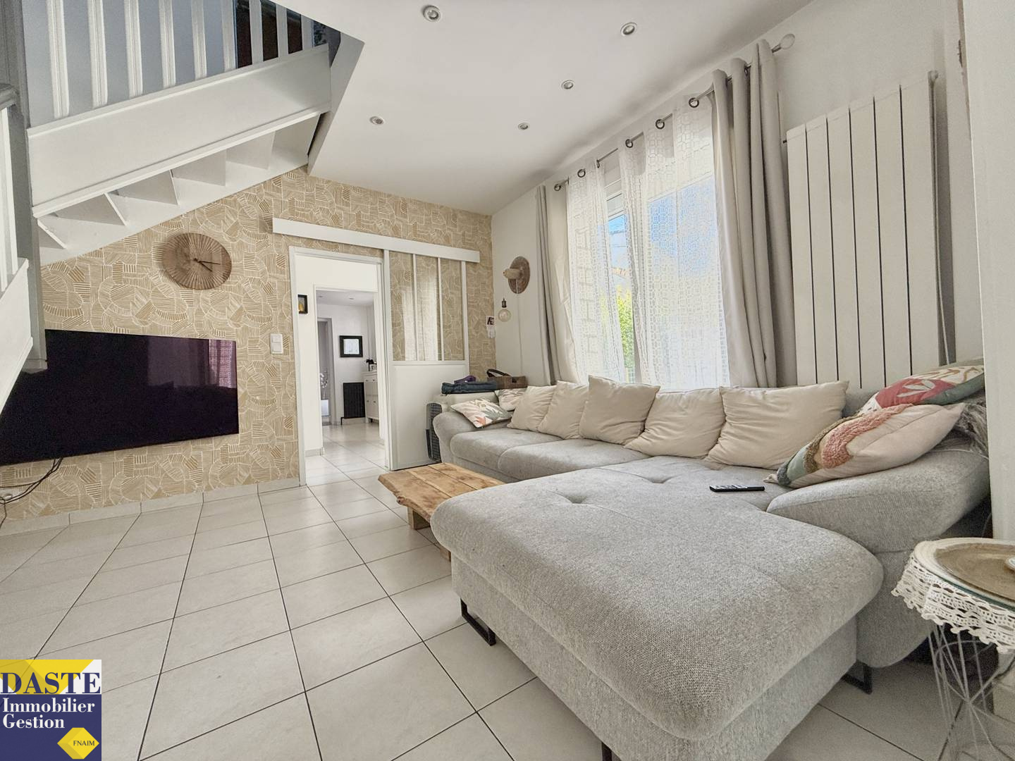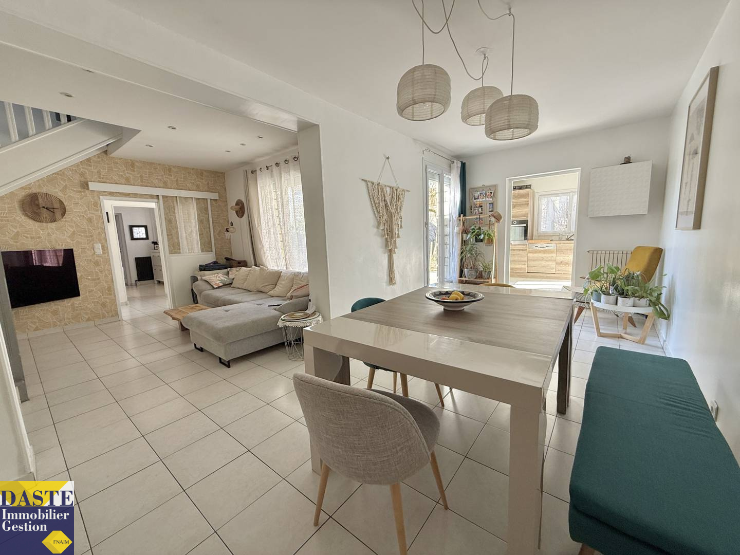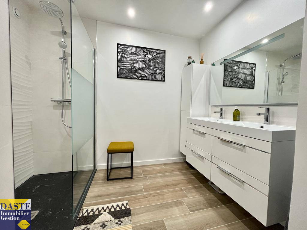 En rez-de-chaussée, entrée, cuisine équipée, séjour et salle à manger. Un avantage d'avoir aussi au même niveau une chambre, une grande salle d'eau et wc indépendants.