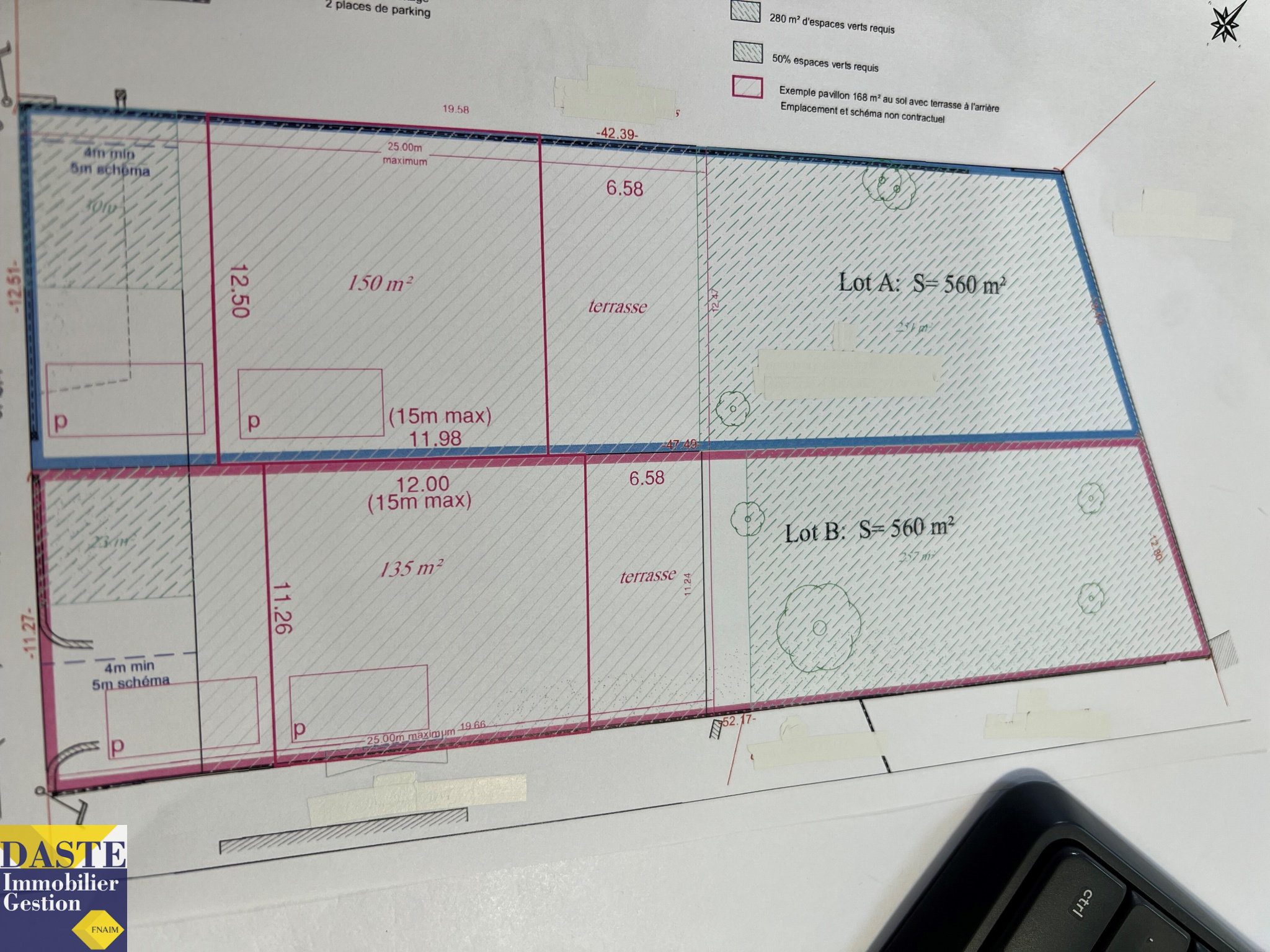 2 magnifiques terrains arborés de 560 m² chacun en centre ville, proximité gare, écoles et commerces.