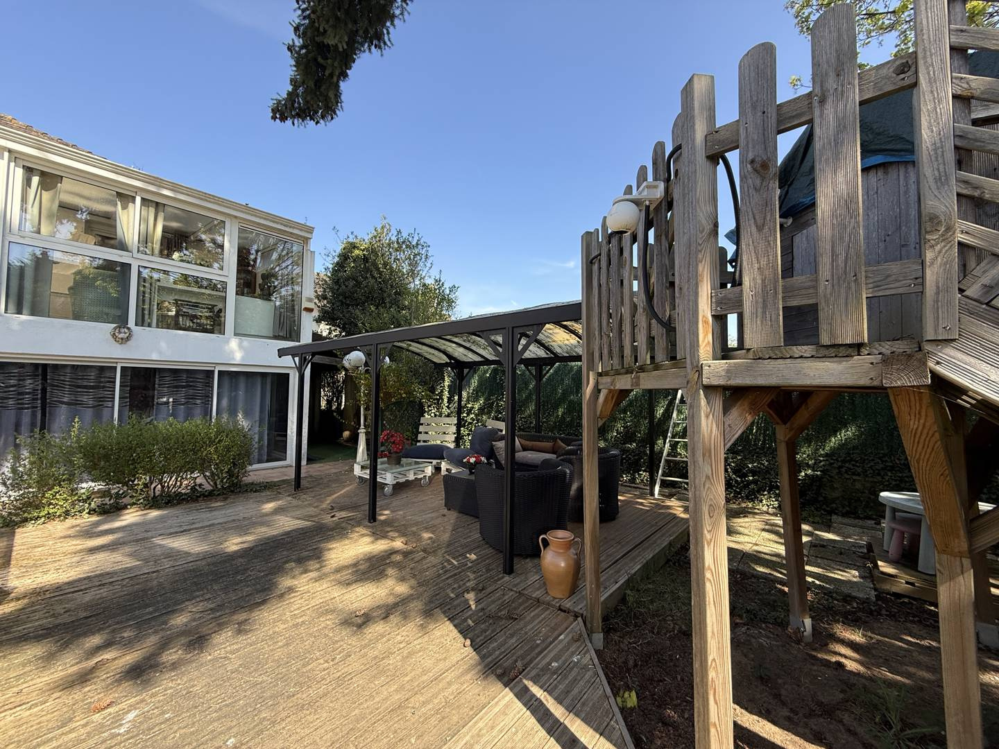 Une entrée, une belle pièce de vie lumineuse exposée sud avec un poêle à bois offrant un accès direct à une pergola bioclimatique donnant sur le jardin, une cuisine équipée et aménagée ouverte sur le séjour, un garage avec espace buanderie et atelier. L'étage propose un palier desservant 4 chambres avec placards, et une salle d'eau avec douche italienne et W.C.