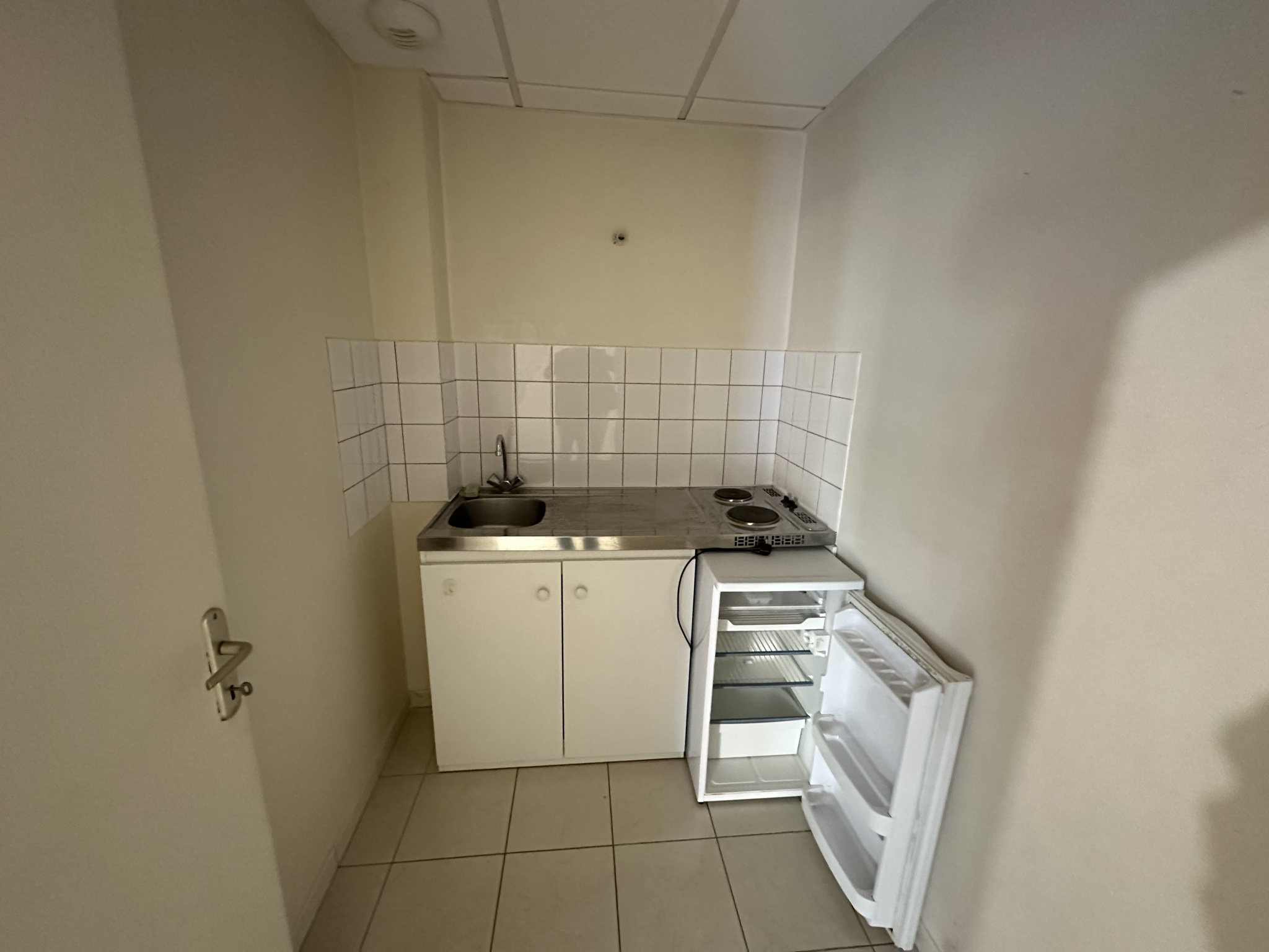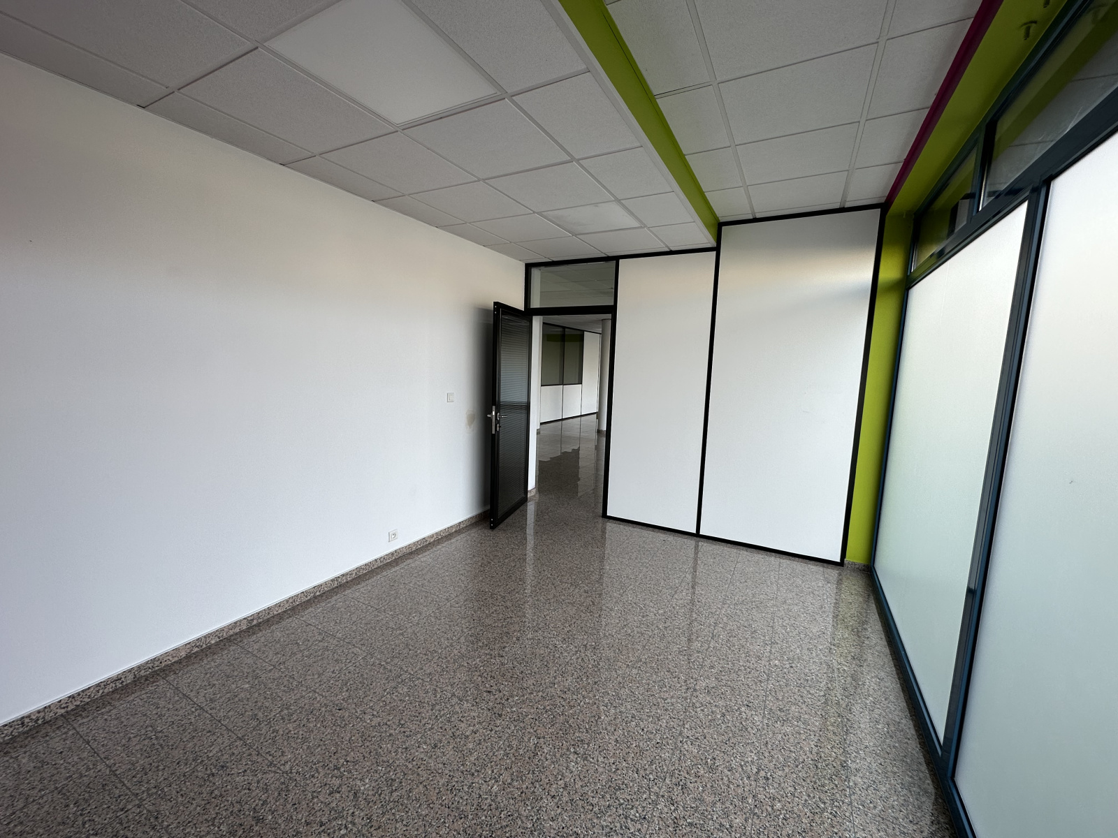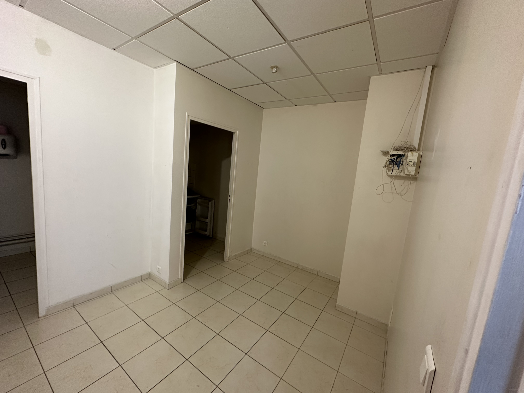 Local commercial d'environ 116m² comprenant grande pièce, 2 spacieux bureaux, cuisine et sanitaires. 2 places de parking privatives. Pas de restauration. Taxe foncière 380€ et provisions de charges 70€ mensuels en plus de loyer (loyer total 2252€). Libre