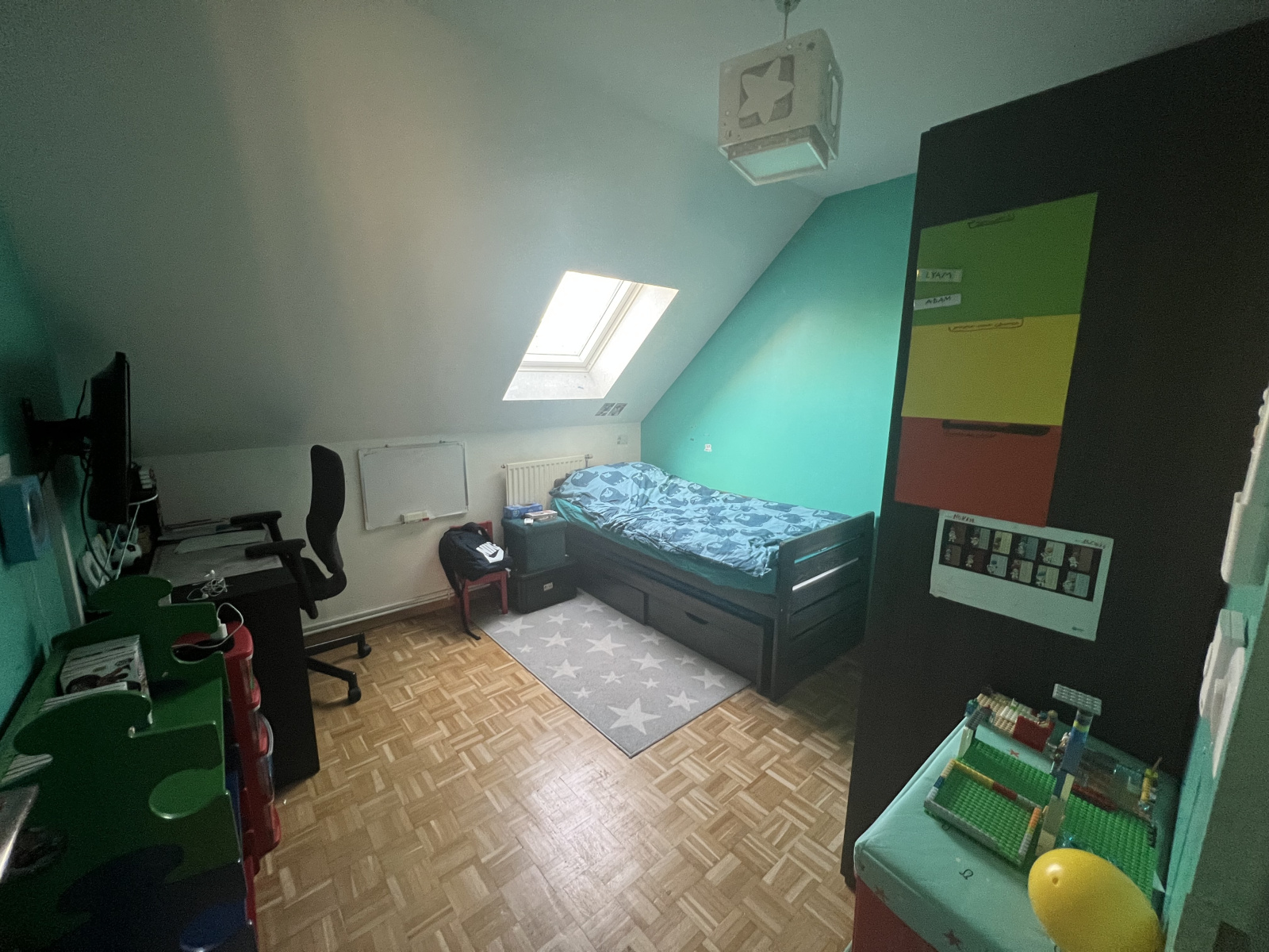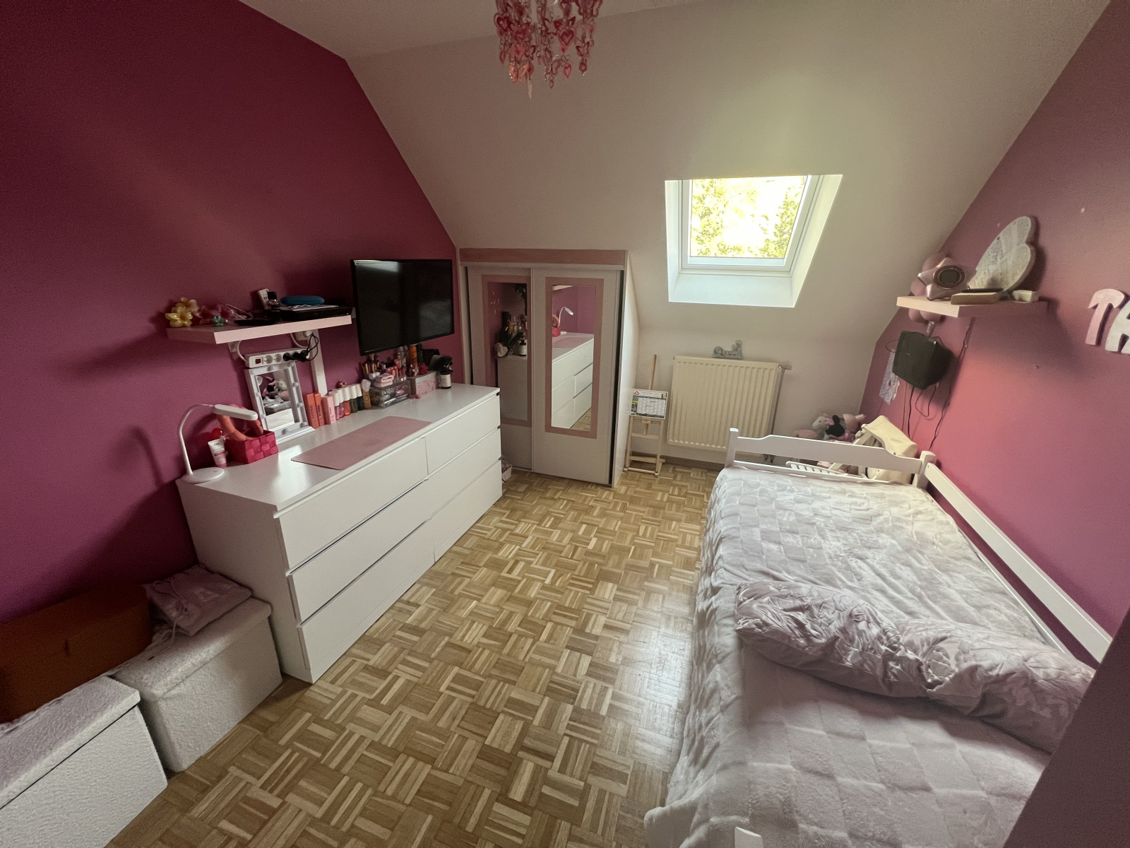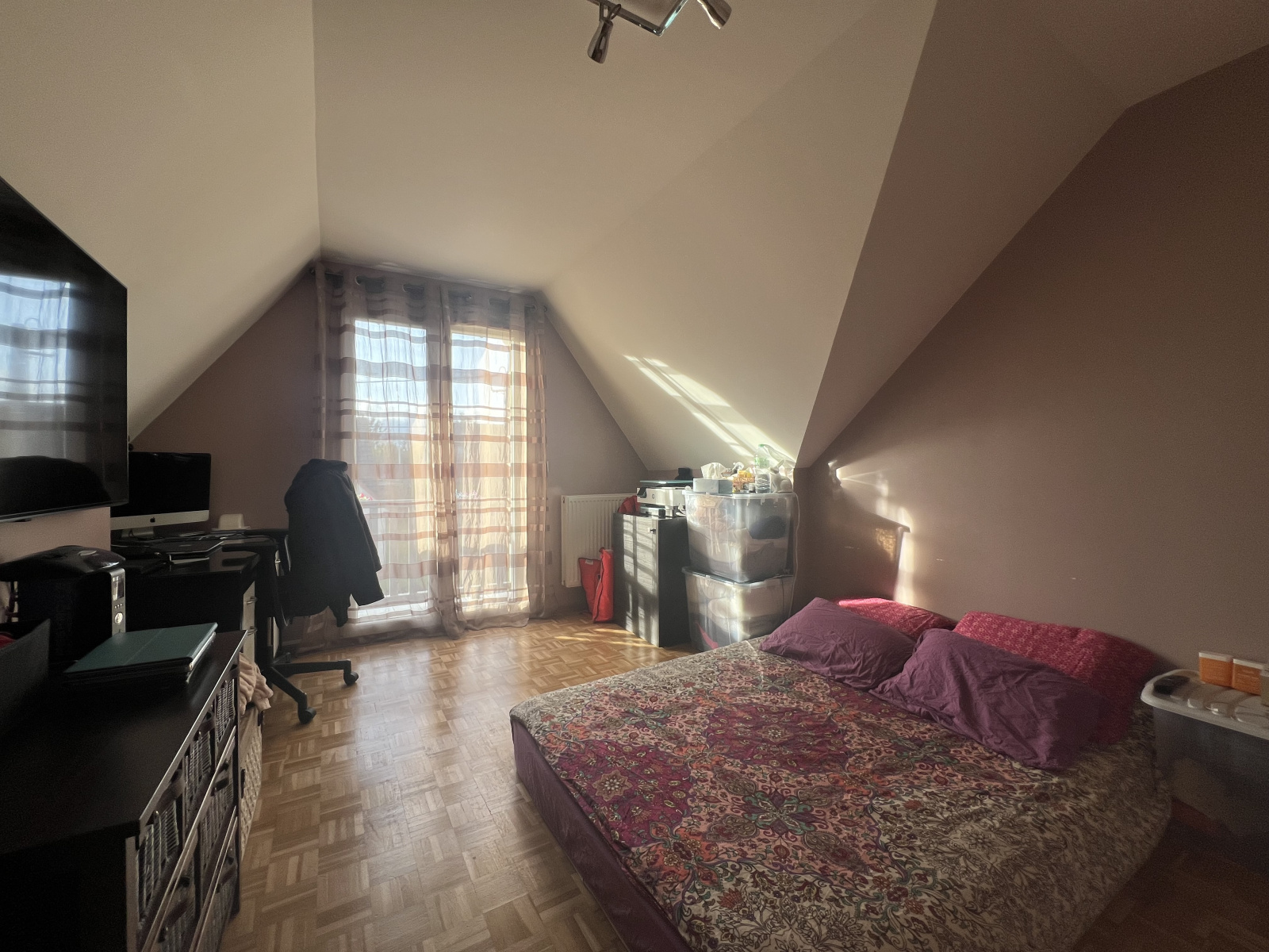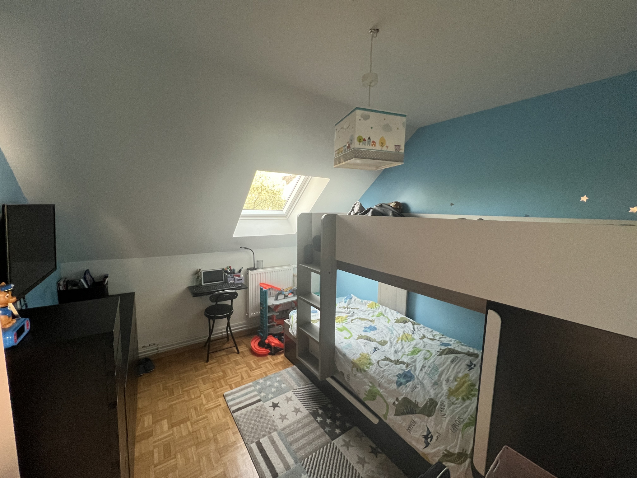 Chauffage gaz et climatisation réversible à l'étage.