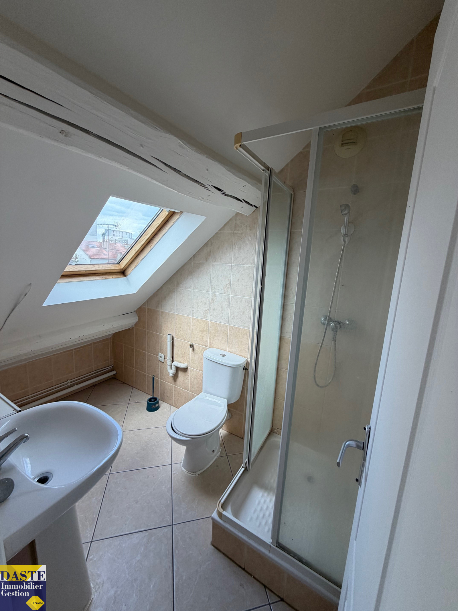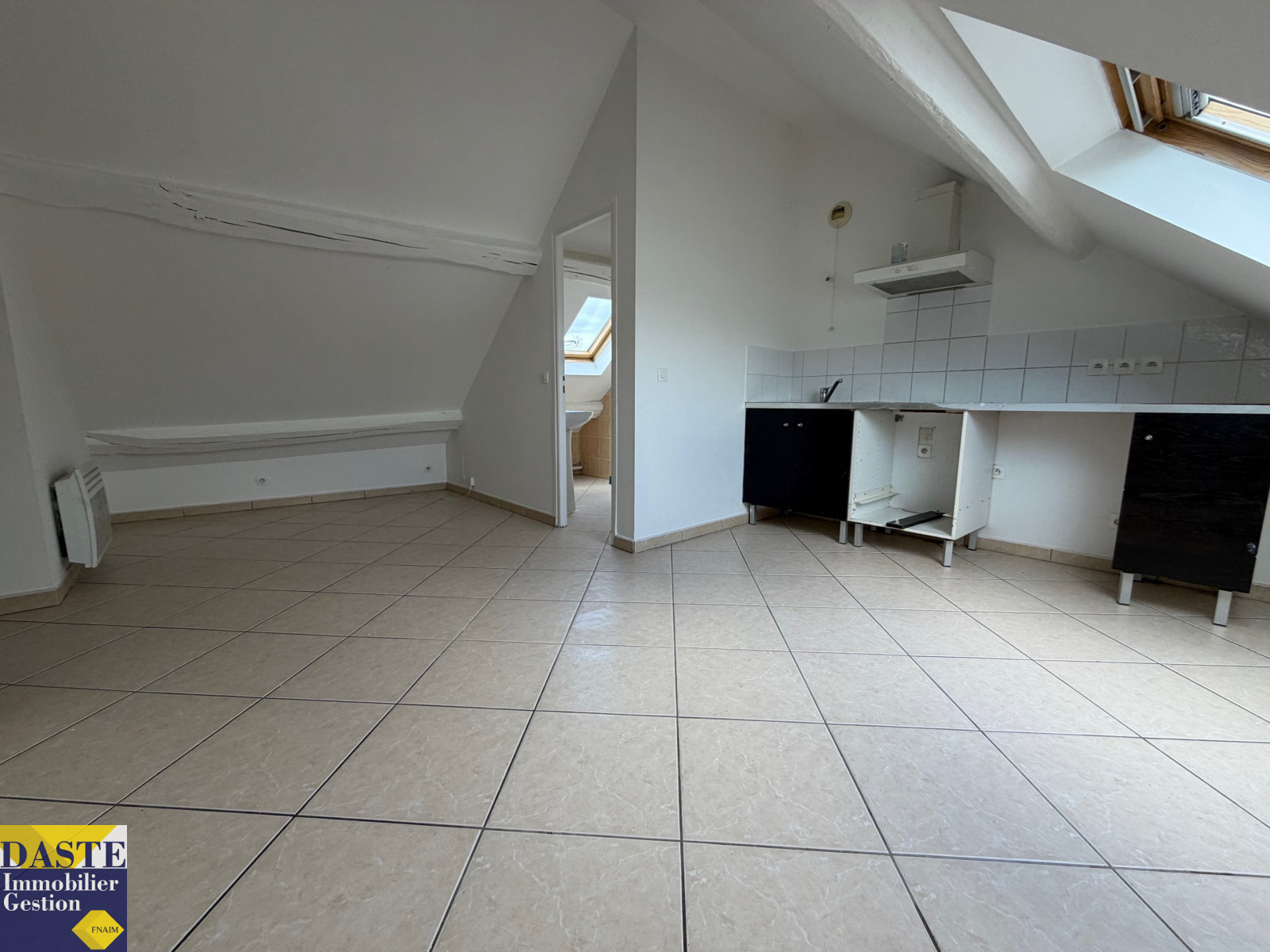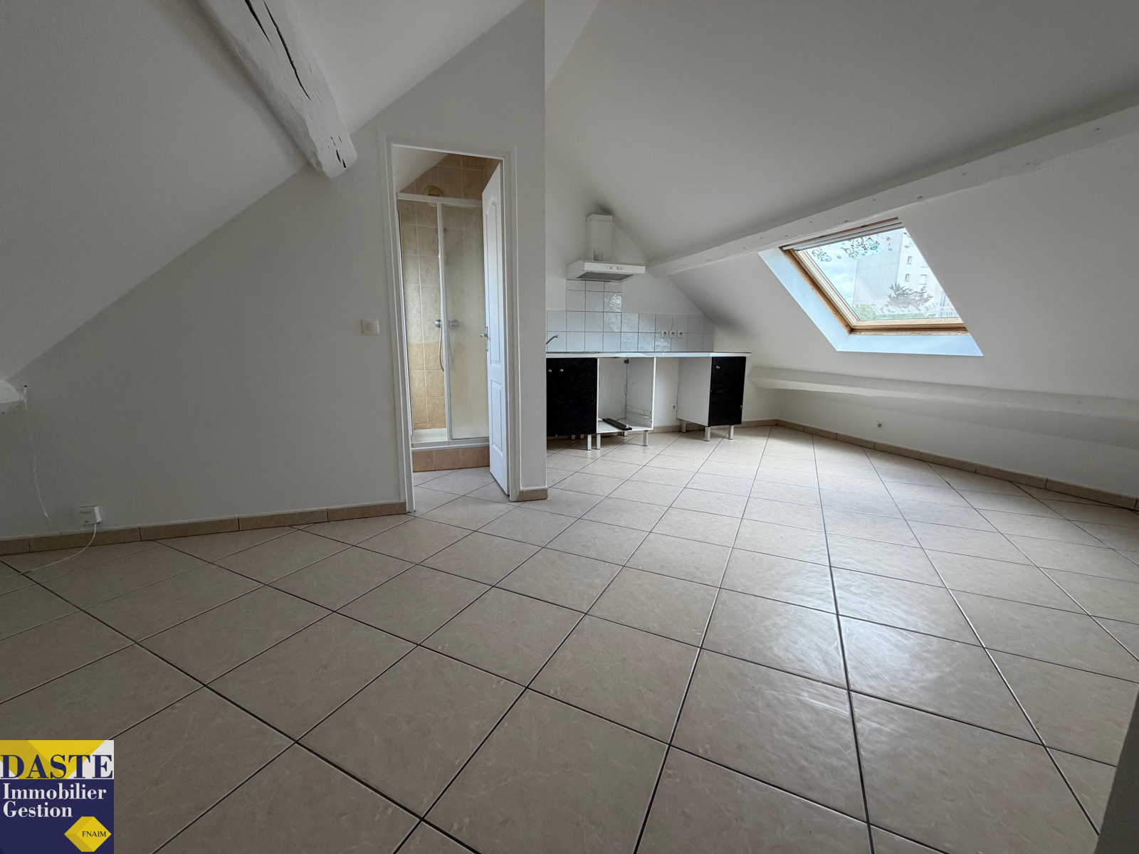 Studio en centre ville de 13.87m² au dernier étage comprenant entrée, pièce de vie avec cuisine ouverte, salle d'eau avec wc. Libre